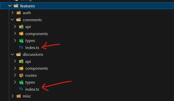 bash|+-- api # Declarations and API hooks, a symphony of requests for this feature|+-- assets # Treasures specific to the awesome feature|+-- components # Components, artisans sculpting the visual identity of the feature|+-- hooks # Hooks, magical spells woven into the fabric of this feature|+-- routes # Paths leading to the feature's pages, a roadmap of wonder|+-- stores # Keepers of state, guarding the feature's sacred truths|+-- types # TypeScript types, a lexicon for the feature's domain|+-- utils # The craftsmen, building utility functions exclusive to this feature|+-- index.ts # The grand entrance, the public API of this feature, revealing its essence